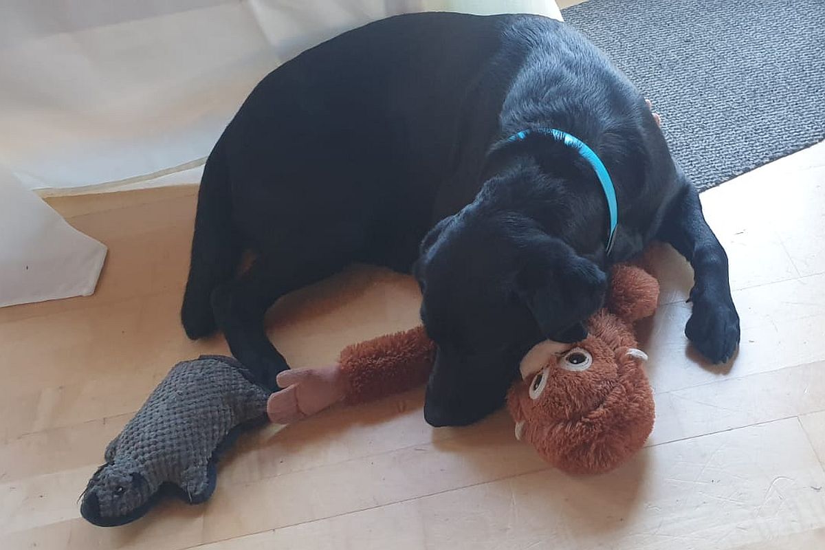 „Die 14 Monate alte Hündin zeigt sich temperamentvoll und bewegungsfreudig. Sie hat viel Ausdauer und ist aufmerksam. Von Beute ist sie begeistert, sie nimmt die Gegenstände rasch auf und trägt sie zu. Zu allen Menschen nimmt sie selbstständig Kontakt auf und verhält sich freundlich und sicher. Die optischen und akustischen Reize des Parcours schaut sie sich selbstständig an. Ab dem zweiten Schuss zeigt sie sich leicht beeindruckt, erholt sich rasch und läuft zum Schützen. Eine aktive Hündin mit sehr großer Freude an Menschen.“
